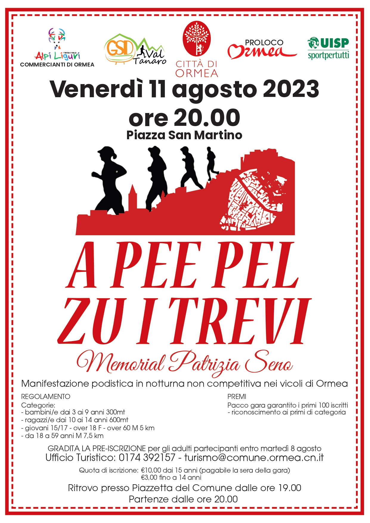 in memoria di Patrizia Seno, manifestazione podistica in notturna non competitiva nei vicoli di Ormea