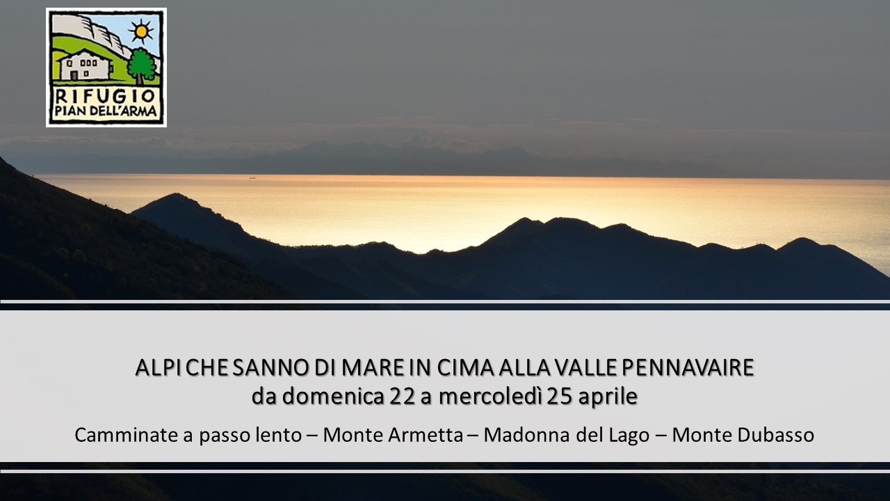 Camminate a passo lento dal rifugio per il monte Armetta, i Forti di Nava e Madonna del Lago con il monte Dubasso per finire in cima al Monte della Guardia che domina le Valli Tanaro e Pennavaire. Una valle “terra di mezzo” sullo spartiacque Piemontese - Ligure con zone di protezione speciale. Previsto l’arrivo in rifugio per le ore 10 della domenica e partenza dopo il pranzo del mercoledì 25 aprile