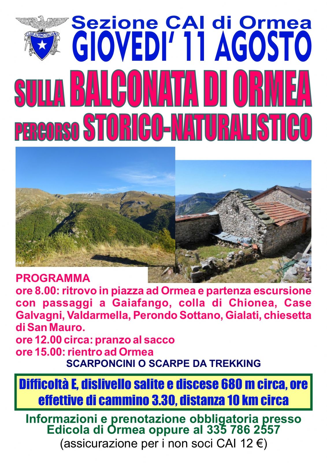 | Organizzazione | Sez. CAI Ormea |