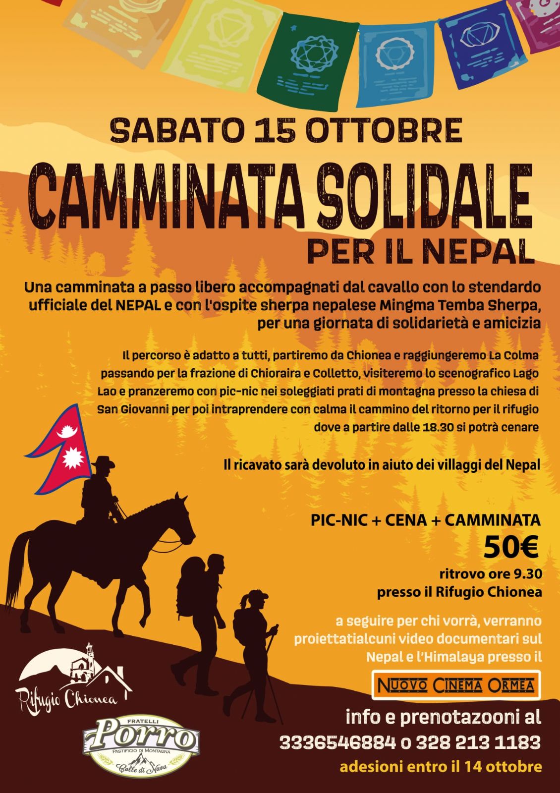 Una camminata a passo libero accompagnati dal cavallo con lo stendardo ufficiale del Nepal e con l'ospite sherpa nepalese Mingma Temba Scherpa per una giornata di solidarietà e amicizia.