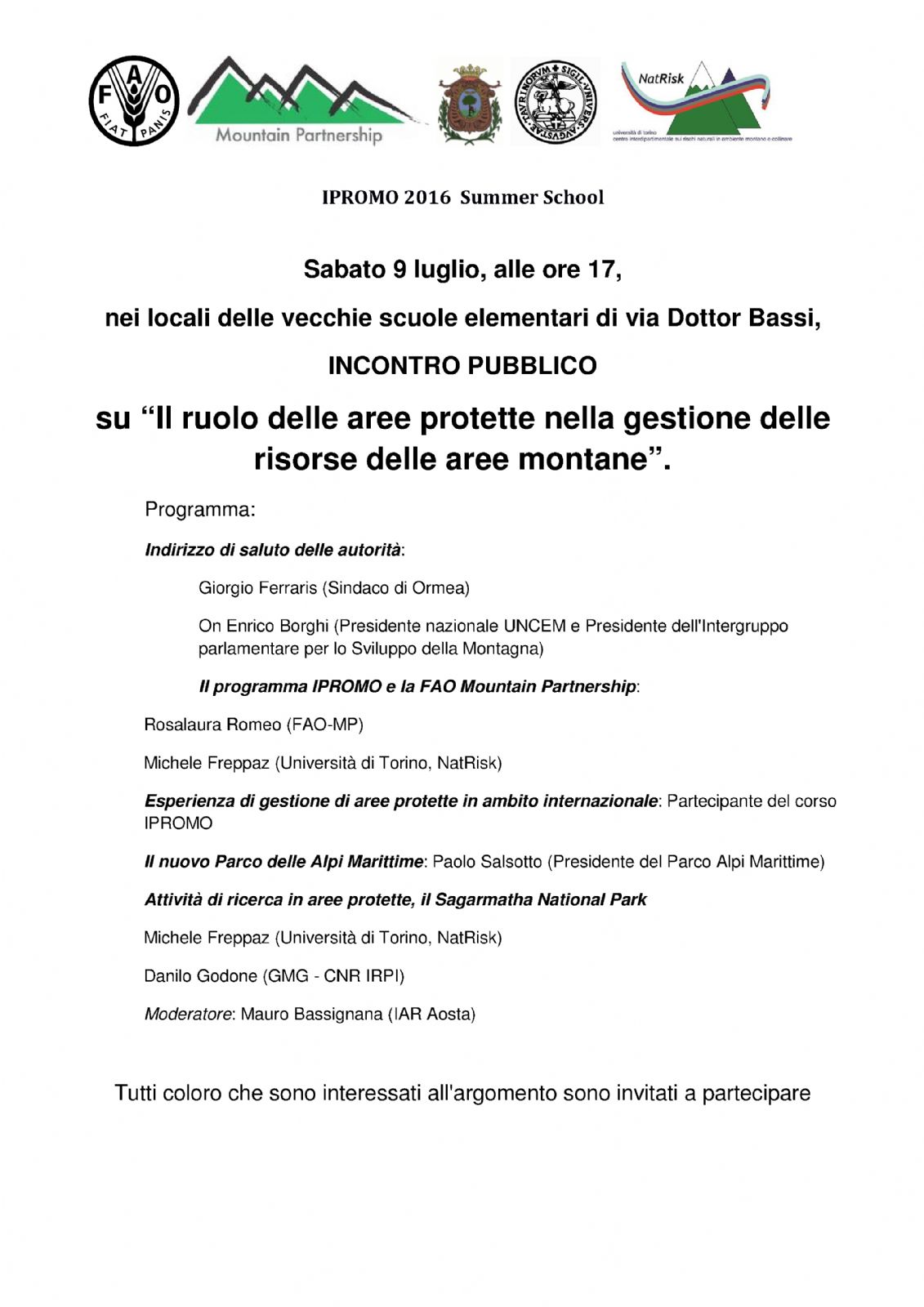 dal 6 all'11 luglio Corsi I-PROMO “Il ruolo delle aree protette nella gestione delle risorse in aree montane”