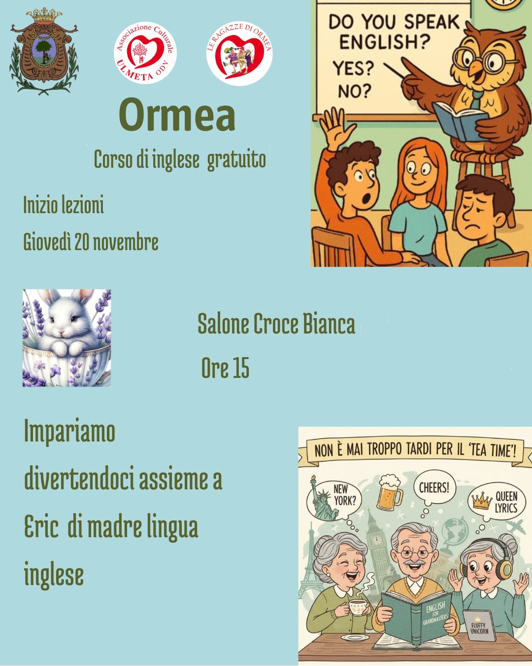 Alle ore 15.00 "Corso d'inglese gratuito" nella Sala della Croce Bianca ad Ormea.