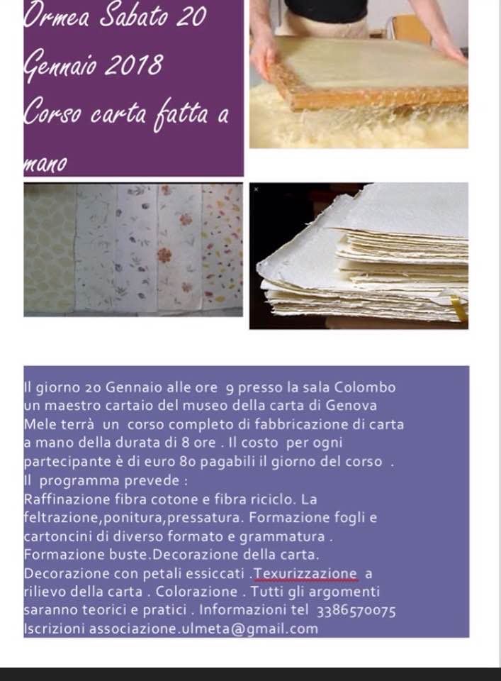 Un mastro cartaio del Museo della Carta di Genova Mele illustrerà le tecniche di fabbricazione di carta fatta a mano