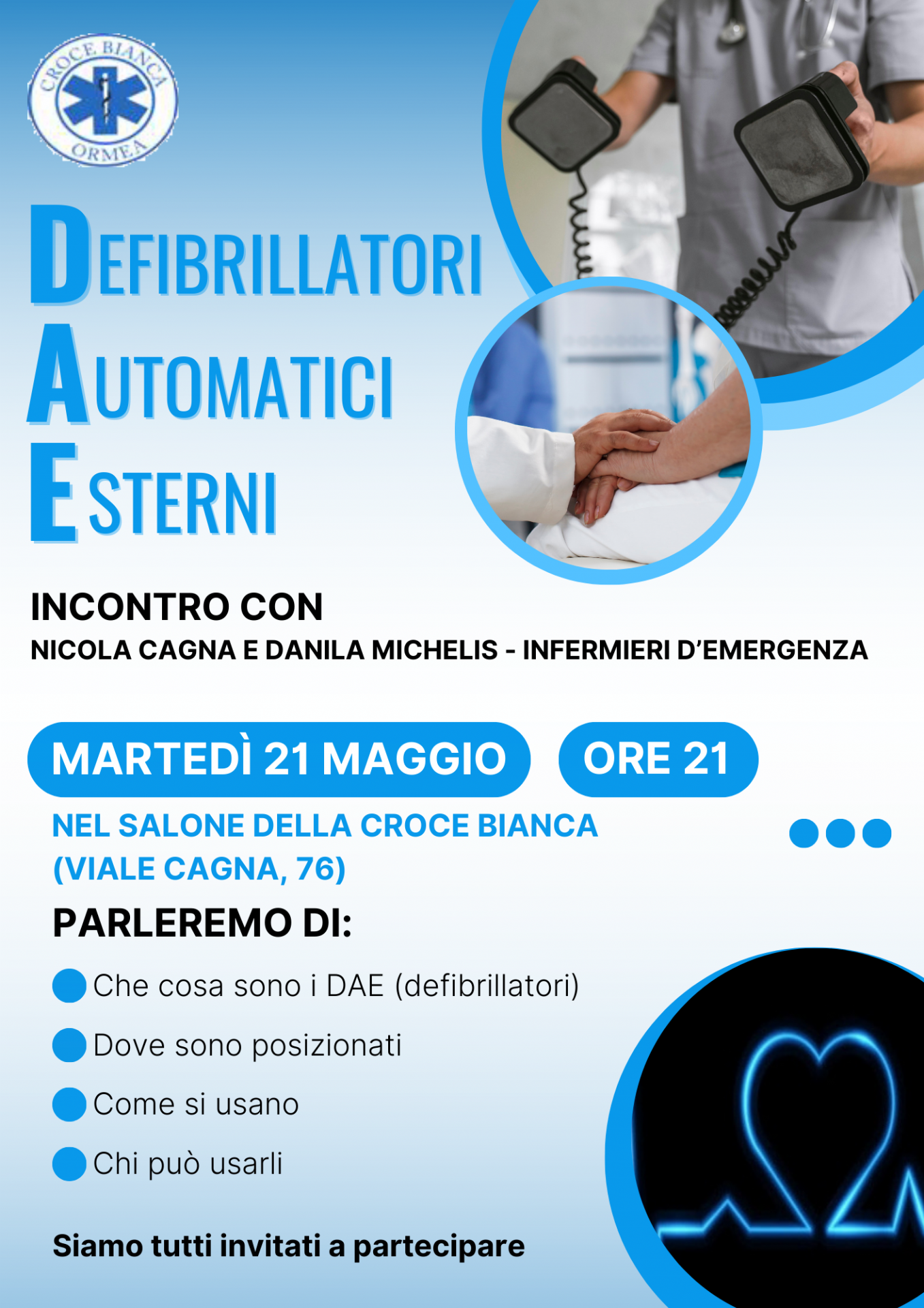 Insieme agli infermieri d'emergenza Nicola Cagna e Danila Michelis scopriremo cosa sono i DAE, come e chi può usarli e dove sono posizionati.