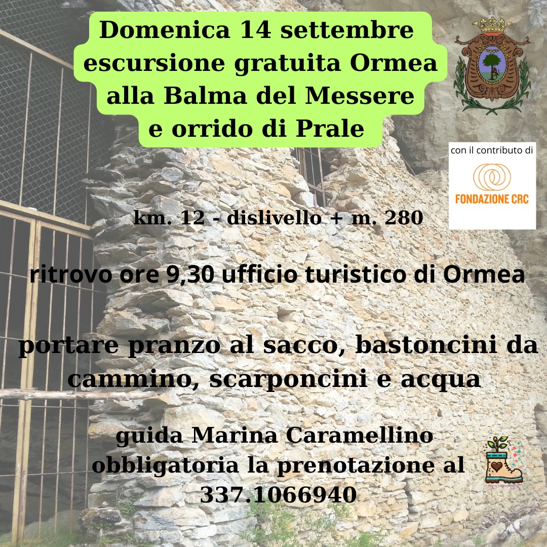Domenica 14 settembre è in programma un’escursione gratuita a Ormea alla scoperta della Balma del Messere e dell’orrido di Prale.