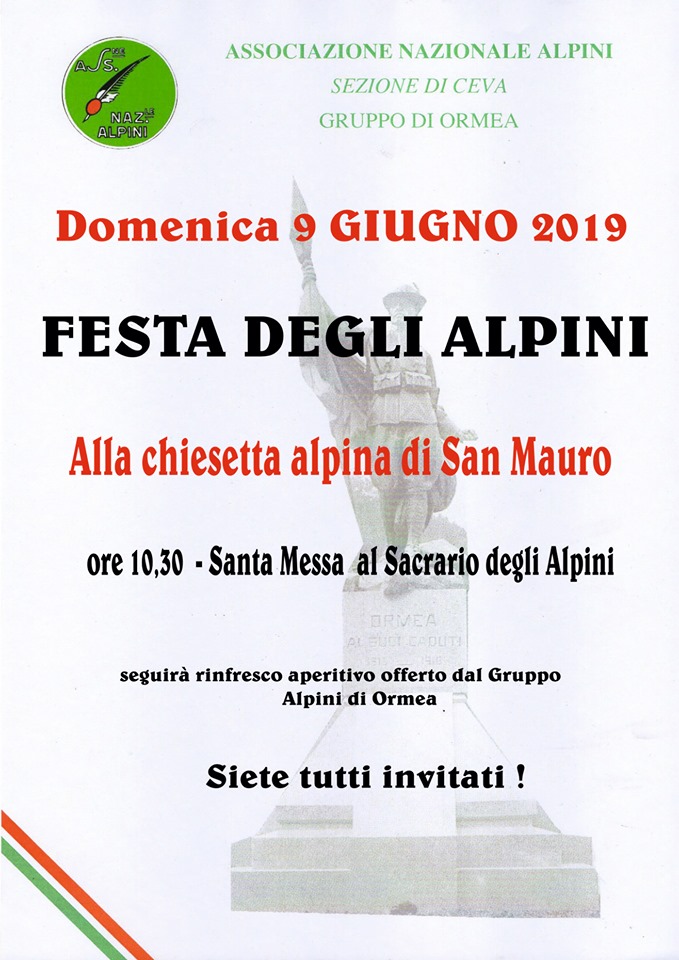 seguirà rinfresco aperitivo offerto dal Gruppo Alpini di Ormea.