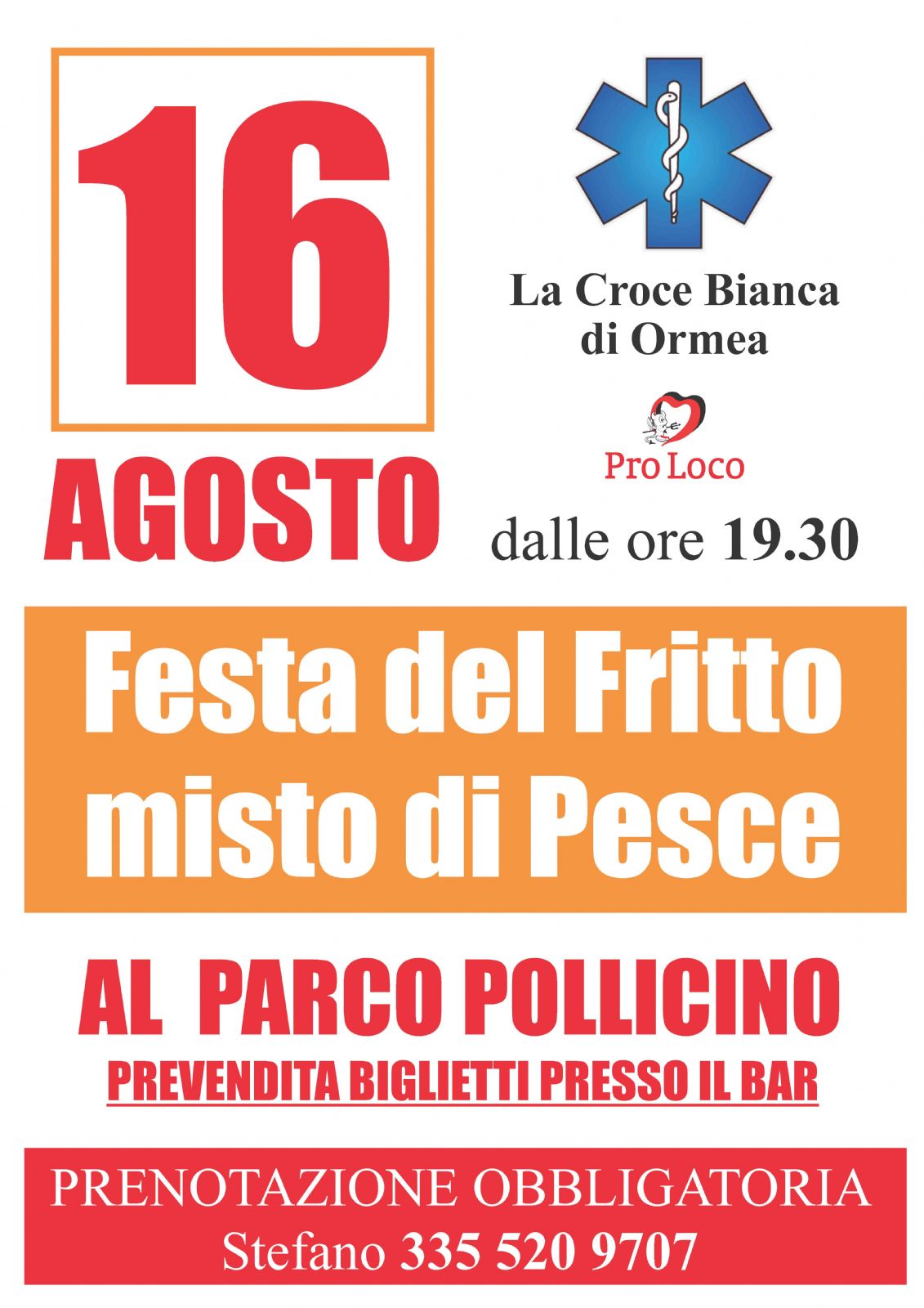 La Croce Bianca di Ormea in collaborazione con la Pro Loco sono lieti di invitarvi alla Festa del Fritto misto di Pesce
