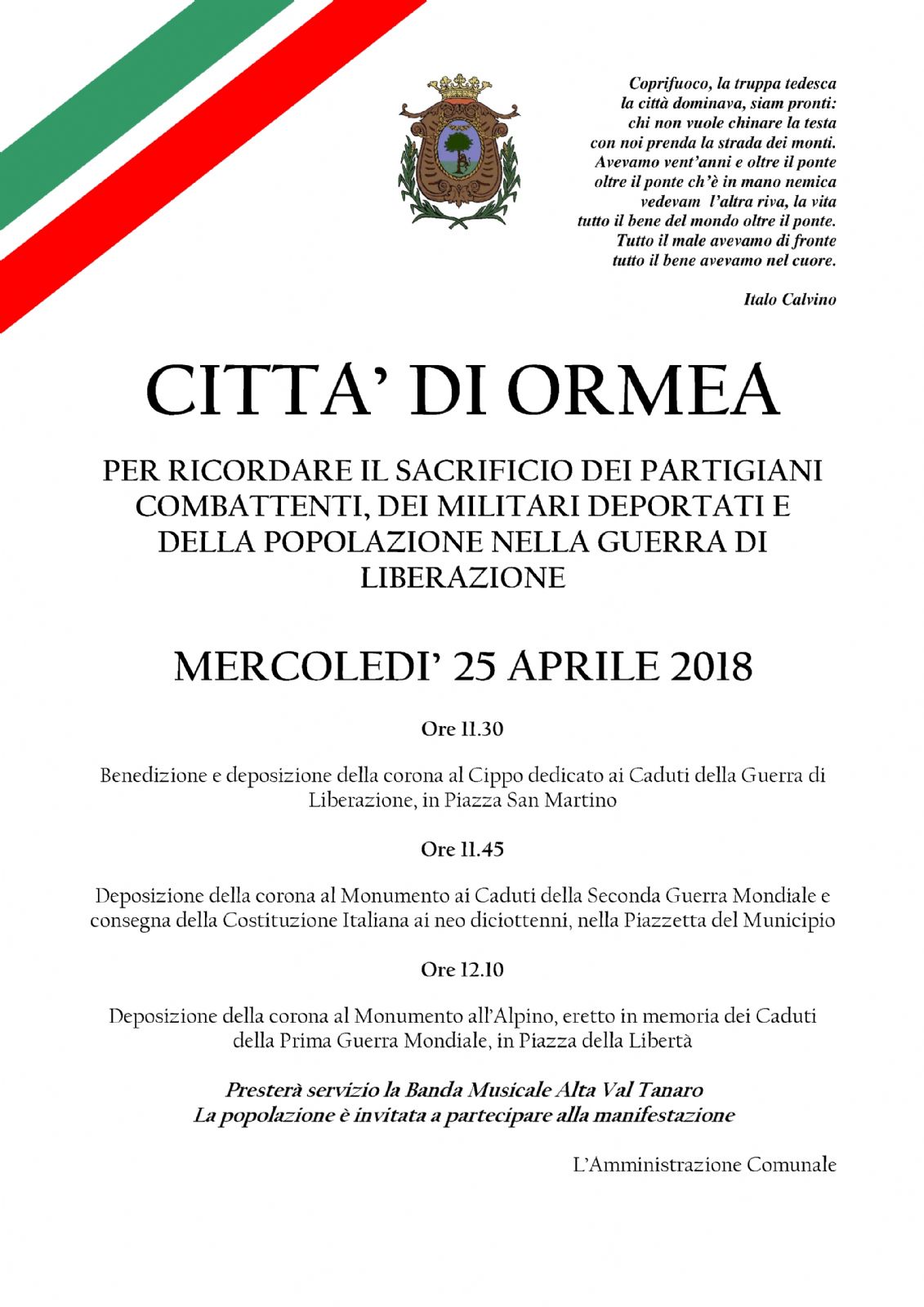 Benedizione e deposizione della corona al Cippo dedicato ai Caduti della Guerra di Liberazione, in Piazza San Martino