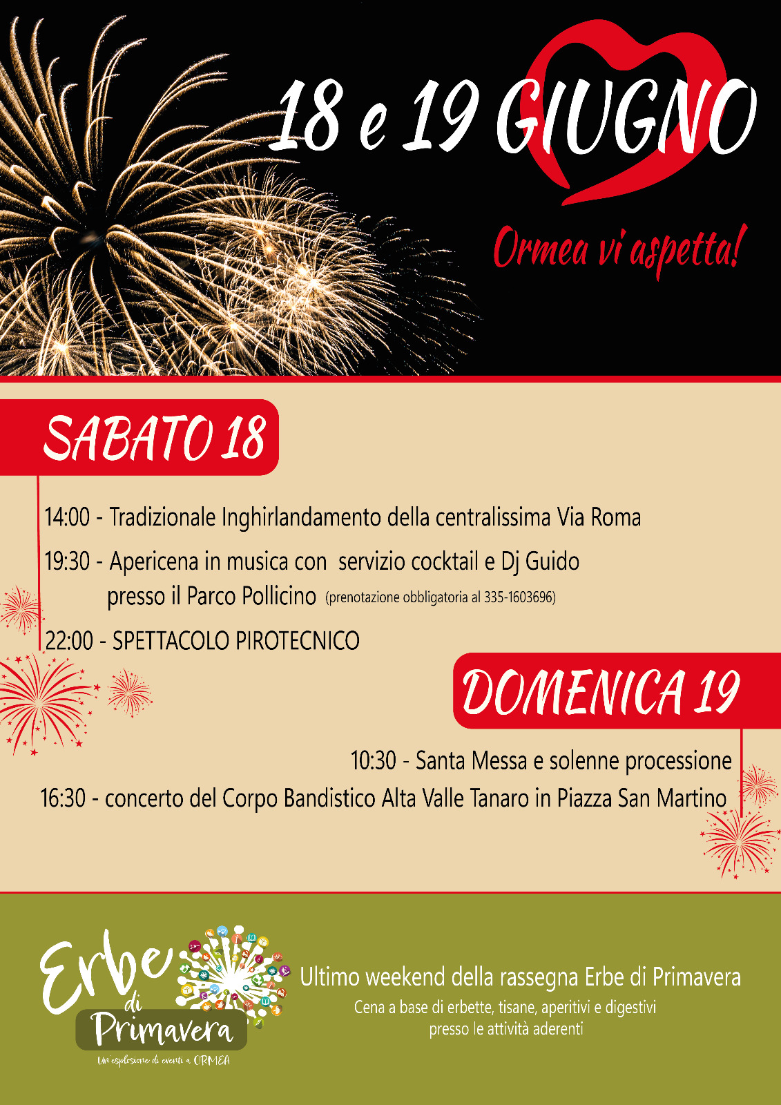 Il giovedì prima della festa iniziano i preparativi. Gli abitanti della via principale di Ormea, Via Roma, con il contributo di altri volontari hanno il compito di raccogliere i fiori di maggiociondolo che vengono intrecciati in ghirlande.