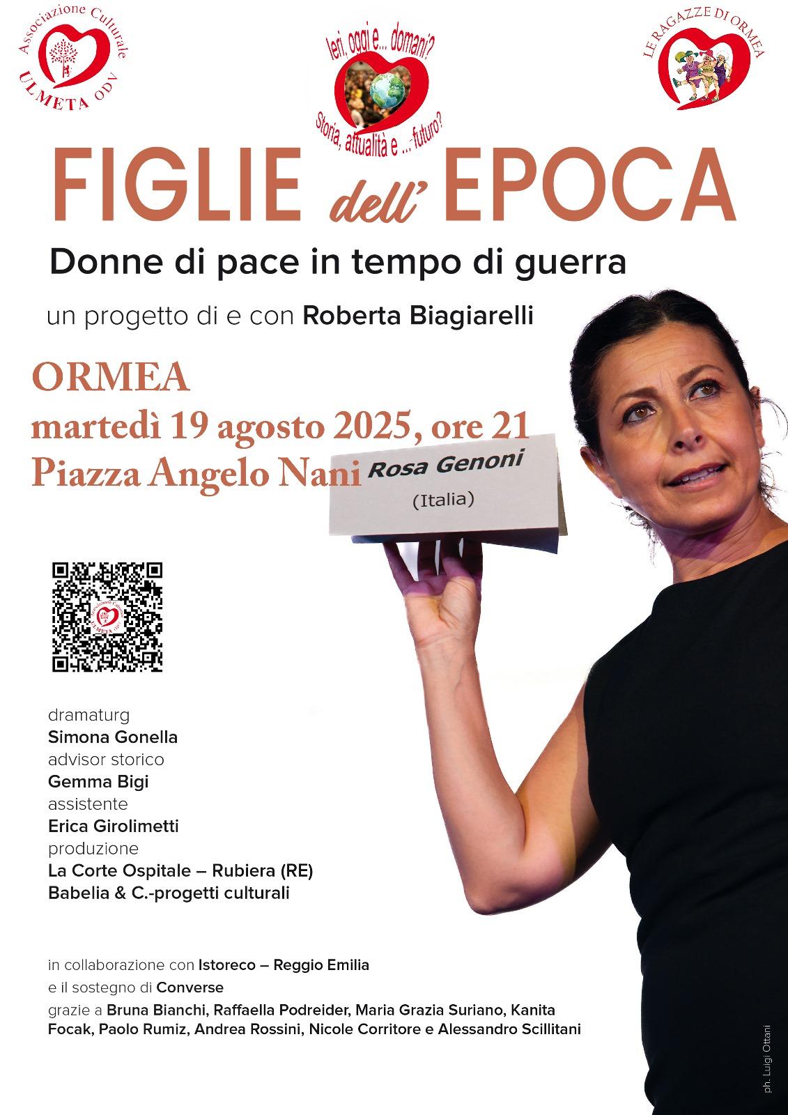 Martedì 19 agosto alle ore 21 in piazza Angelo Nani "FIGLIE dell’EPOCA – Donne di pace in tempo di guerra", un progetto teatrale di e con Roberta Biagiarelli