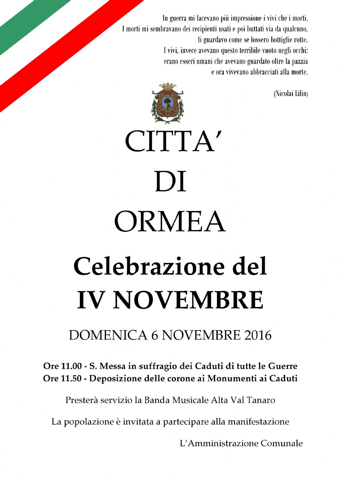 Commemorazione dell'anniversario della fine della Prima Guerra Mondiale 4 novembre 1918.