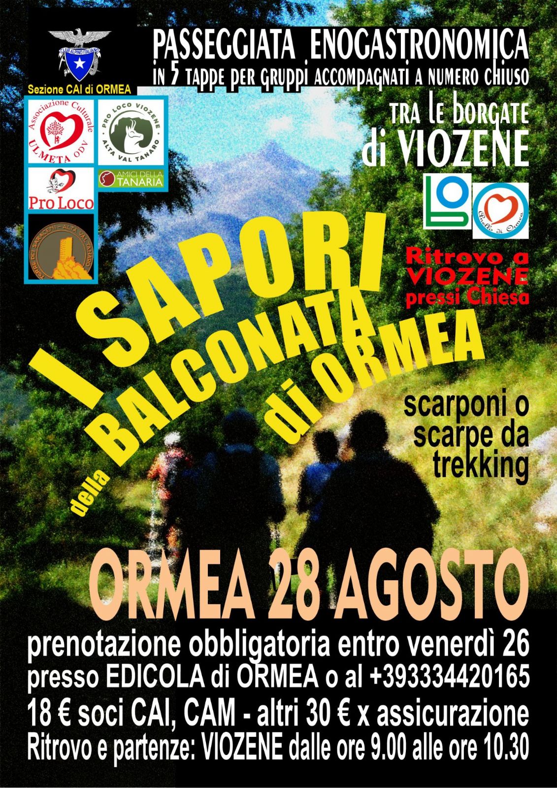 Prenotazione obbligatoria entro venerdì 26 agosto presso Edicola di Ormea o al +39 333 442 0165