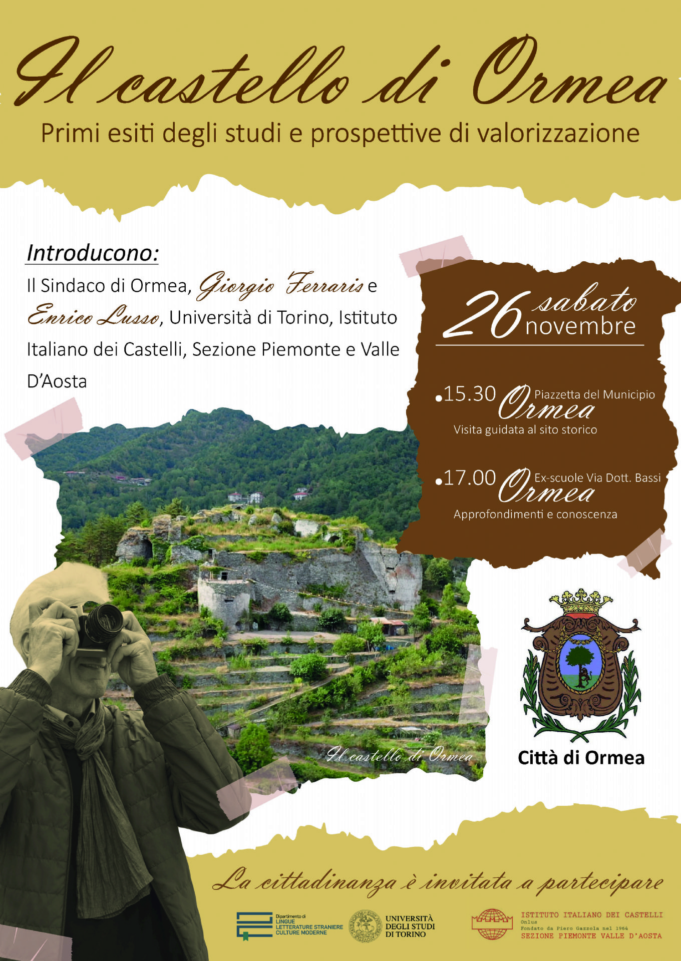 Introducono, il sindaco di Ormea, Giorgio Ferraris e Enrico Lusso, Università di Torino, Istituto Italiano dei Castelli, Sezione Piemonte e Valle d'Aosta.
