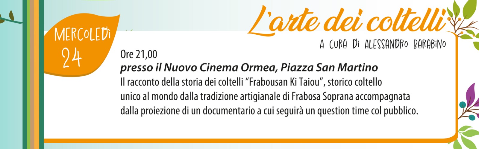 Serata a cura di Alessandro Barabino alle ore 21.00 presso il Nuovo Cinema Ormea