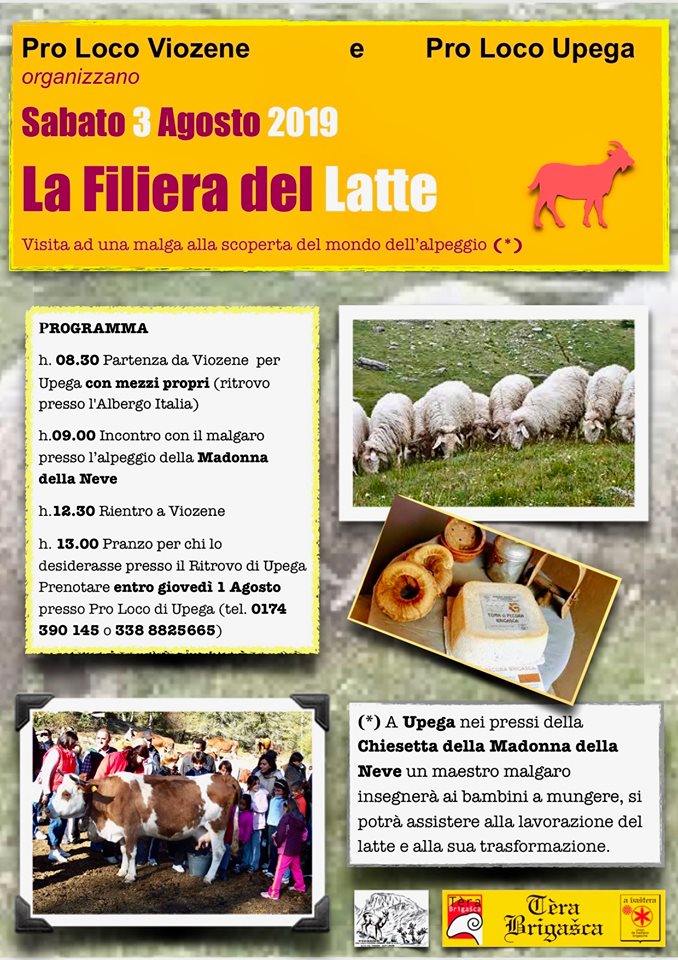 Ogni anno si rinnova la magia di un incontro con un mondo da conoscere e valorizzare. L’attività pastorale, quella della trasformazione del latte sono strettamente legate alla montagna, allo specifico pastorale dell’Alta Val Tanaro. Sebbene minacciata, faticosa, quest’attività caratterizza ancora ambiente e cultura di questa valle. Partecipare alla Filiera del Latte non è solo un passatempo agostano ma un gesto di conoscenza che diventa emozione.