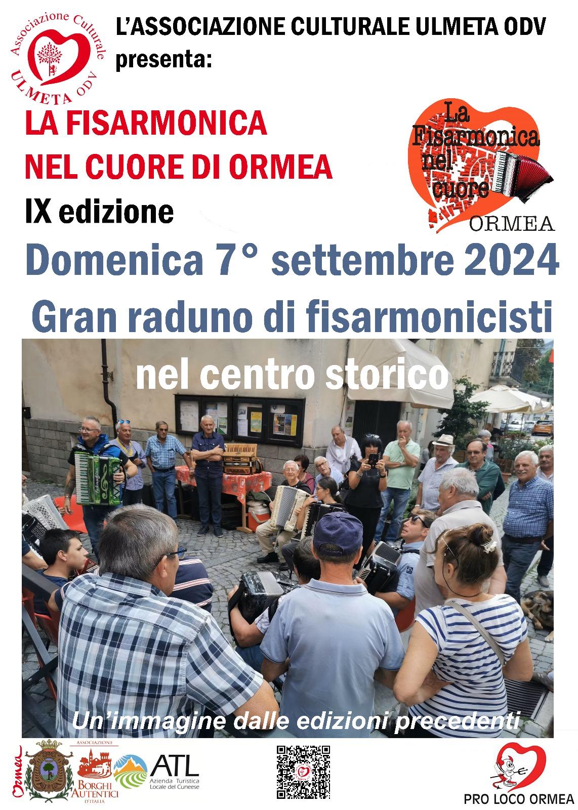 Domenica 7 settembre nel centro storico di Ormea torna la IX edizione di "La fisarmonica nel cuore di Ormea", con il tradizionale Gran raduno di fisarmonicisti.