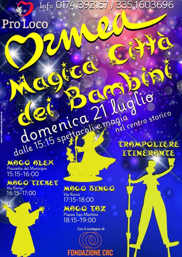 Dalle ore 15.00 circa Ormea sarà pronta a trasformarsi in un piccolo paese incantato, con maghi e spettacoli itineranti, lungo le vie e nelle piazzette dell’antico borgo.