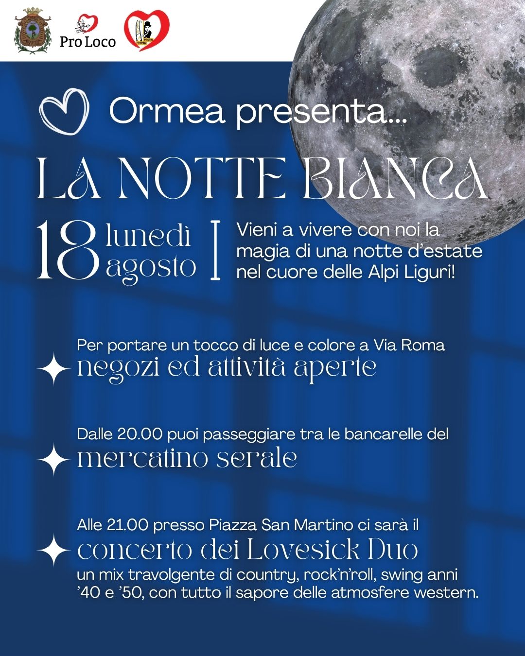 La Pro Loco di Ormea ti invita a vivere una serata speciale: La Notte Bianca torna a colorare l’estate nel cuore delle Alpi Liguri.
