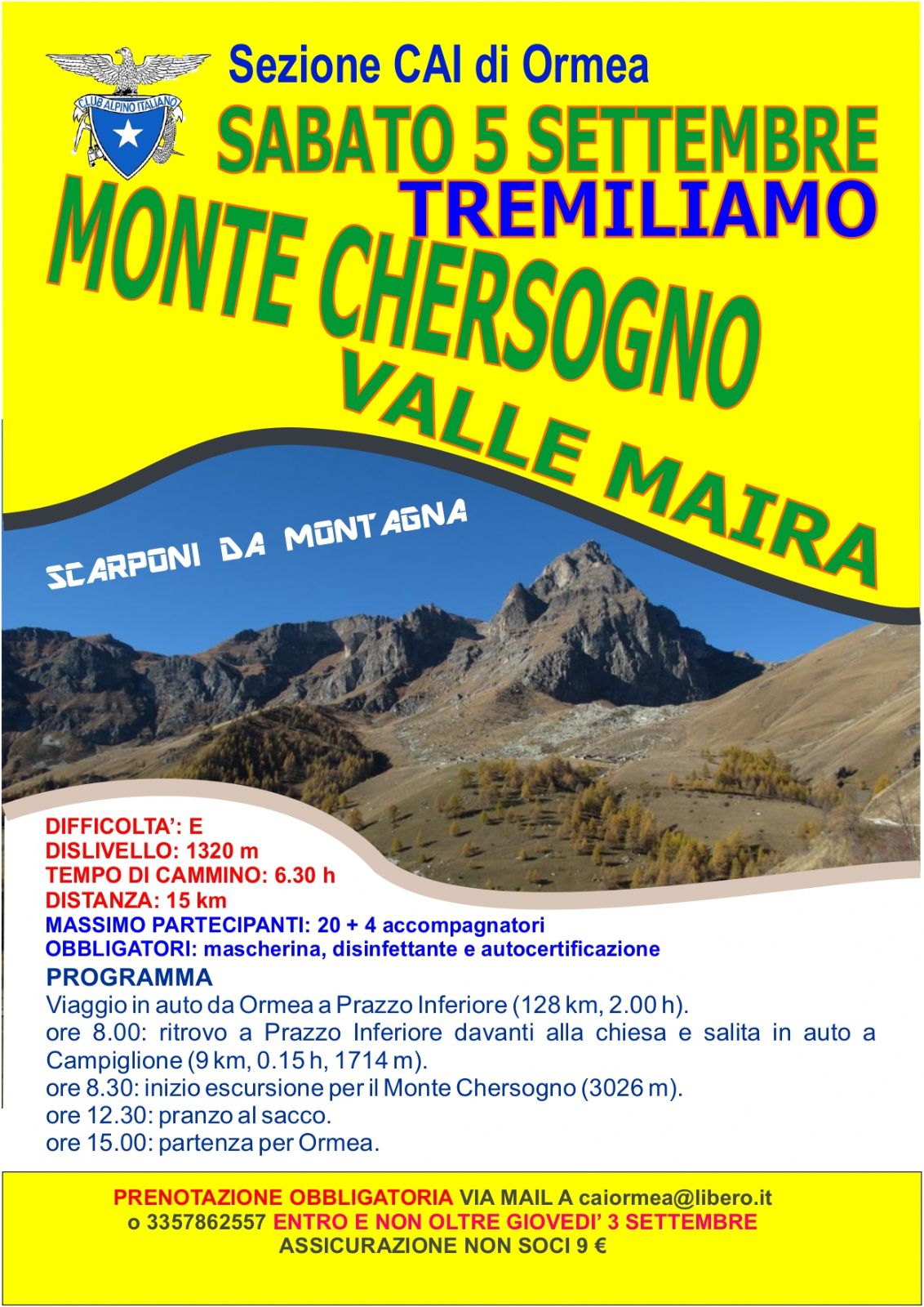 Prenotazione obbligatoria via mail a: caiormea@libero.it