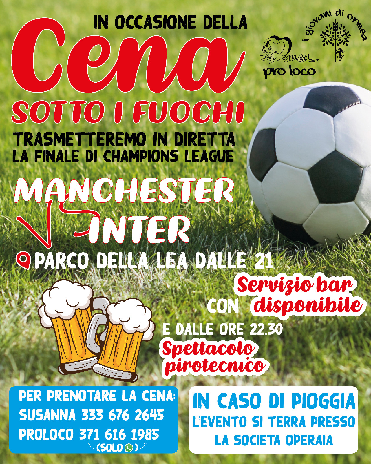 In occasione della "Cena sotto i fuochi" trasmetteremo in diretta la finale di Champions League