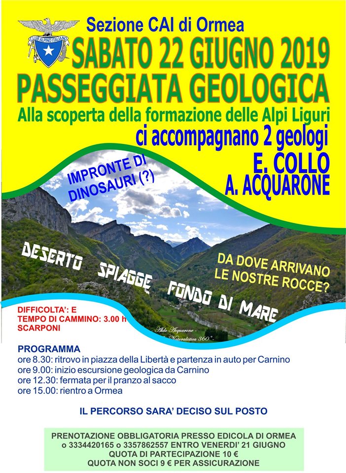 Per sabato 22 giugno una nuova avventura, questa volta in compagnia di 2 geologi di chiara fama: