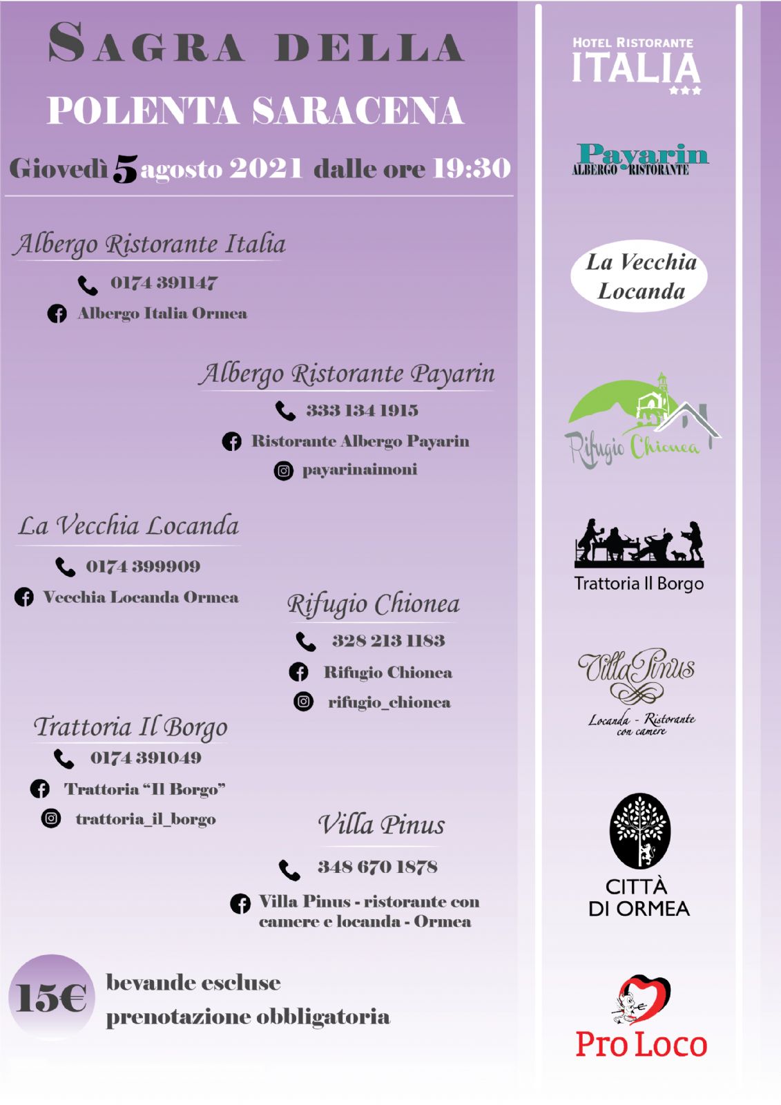 | Organizzazione | Pro Loco Ormea |