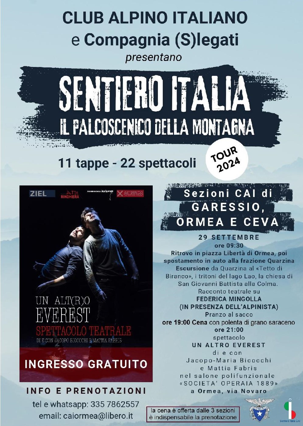 - Ore 21:00 Spettacolo "Un altro Everest" di e con Jacopo-Maria Bicocchi e Mattia Fabris presso la Sala Società Operaia