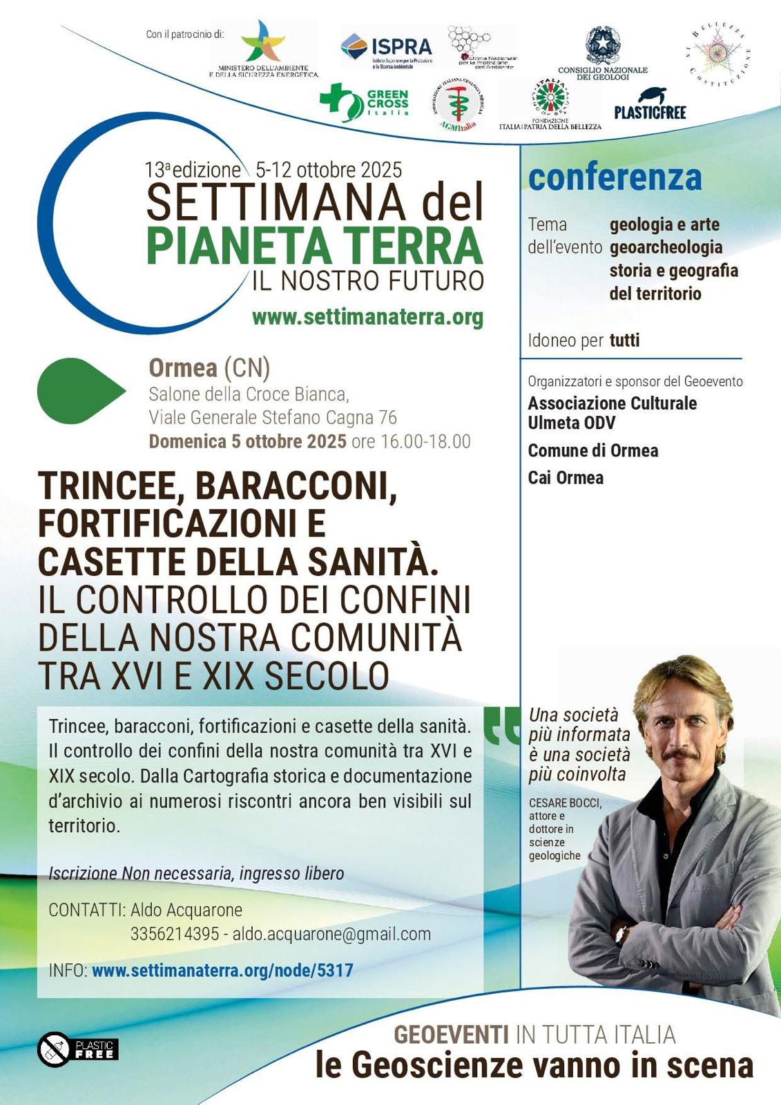 La conferenza è organizzata dall’Associazione Culturale Ulmeta ODV, in collaborazione con il Comune di Ormea e il CAI Ormea, nell’ambito dei GeoEventi che, in tutta Italia, mettono le geoscienze “in scena” per sensibilizzare cittadini e comunità.