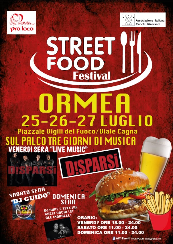 Dal 25 al 27 luglio "Street Food Festival Ormea" nel Piazzale Vigili del Fuoco – Viale Cagna. Tre giorni di cibo e birra a Ormea per una nuova edizione dello Street Food Festival, con musica dal vivo e dj set per animare le serate estive