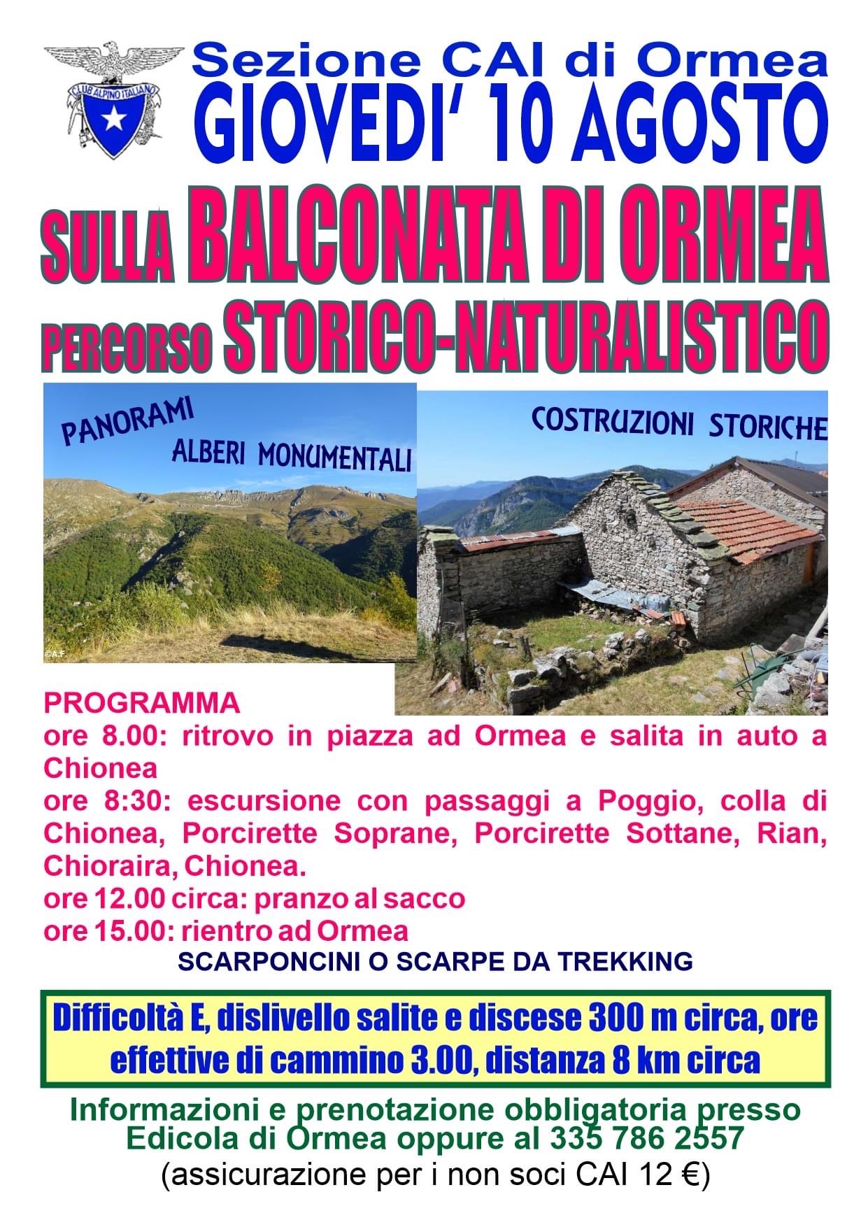 La sezione del C.A.I. di Ormea organizza un'escursione con percorso Storico-Naturalistico
