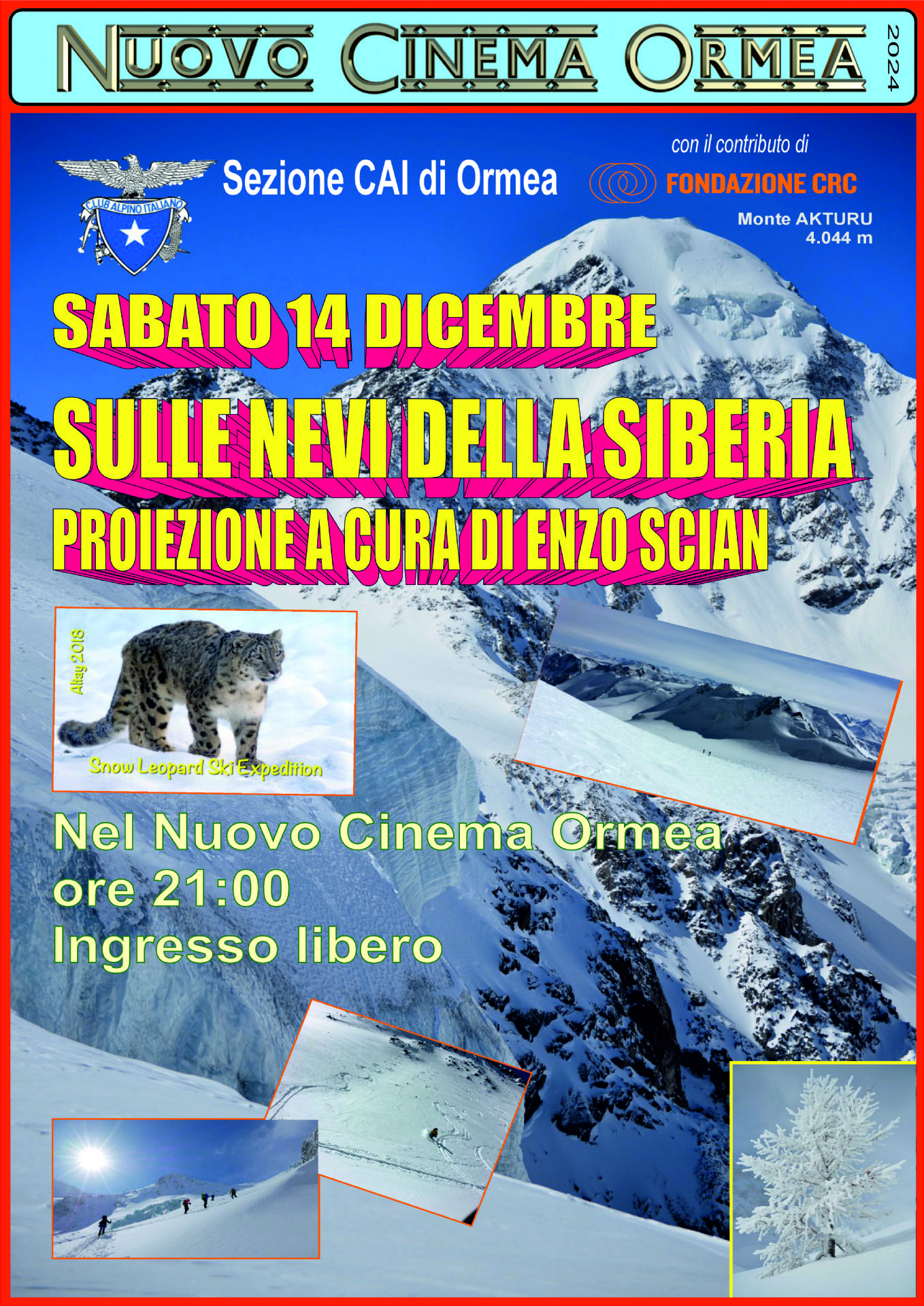 Una serata speciale dedicata all'avventura e alla montagna: Enzo Scian presenterà il suo viaggio "Sulle nevi della Siberia", raccontando in diretta le emozioni e le sfide affrontate. Dopo la proiezione del filmato, l'autore sarà disponibile per rispondere alle domande e alle curiosità del pubblico.
