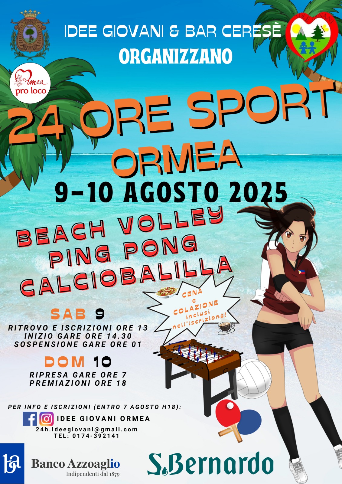 Dal 9 agosto al 10 agosto ad Ormea, torna la 24 ORE SPORT 🏐🏓
