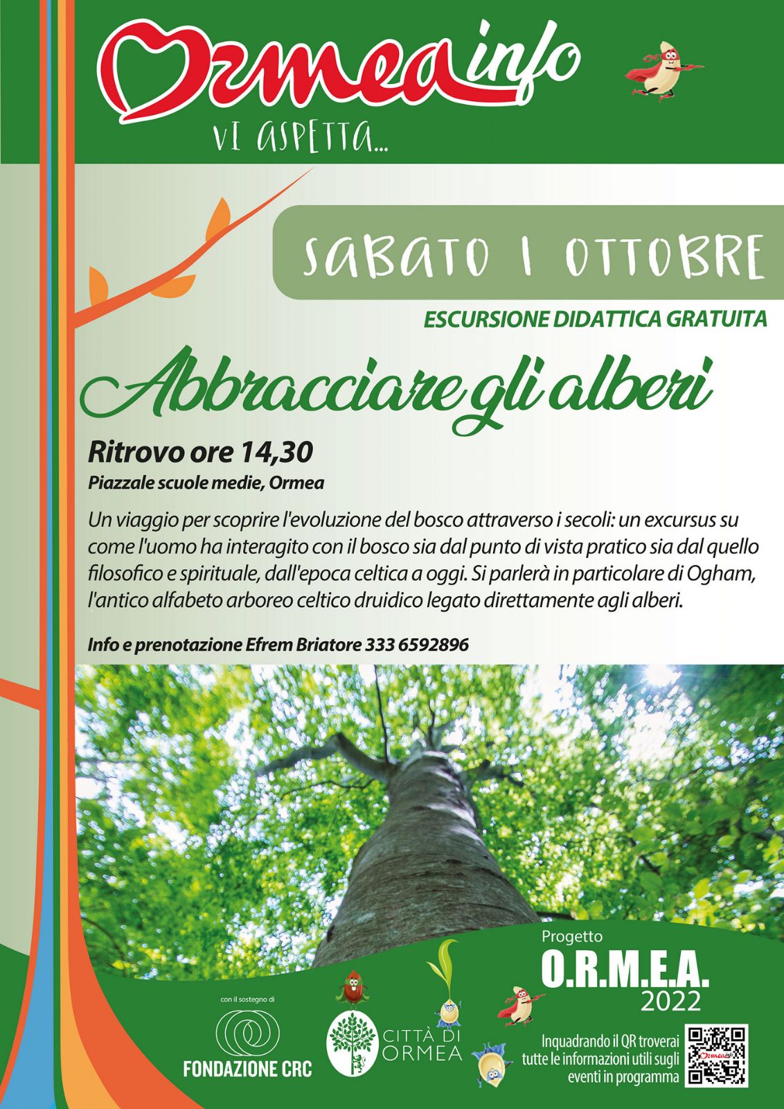 L'uscita "Abbracciare gli Alberi" con l'esperto Efrem Briatore, vi farà scoprire l'evoluzione del bosco attraverso i secoli: un excursus su come l'uomo ha interagito con il bosco sia dal punto di vista pratico sia da quello filosofico e spirituale, dall'epoca celtica a oggi. Si parlerà in particolare di Ogham, l'antico alfabeto arboreo celtico druidico legato direttamente agli alberi, analizzando queste creature viventi non solo dal punto di vista botanico ma anche quello filosofico e culturale, approfondendo così la conoscenza degli alberi dell'Alta Val Tanaro.