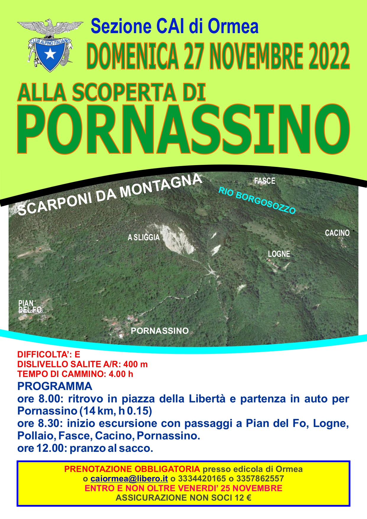 Un'uscita in Alta Val Tanaro alla scoperta di zone poco note, vagheremo tra le borgate della frazione di Cacino, dove forse molti non sono mai andati, partendo da Pornassino. Anche Cacino come le altre 13 frazioni ha la chiesa, il cimitero, un tempo la scuola.