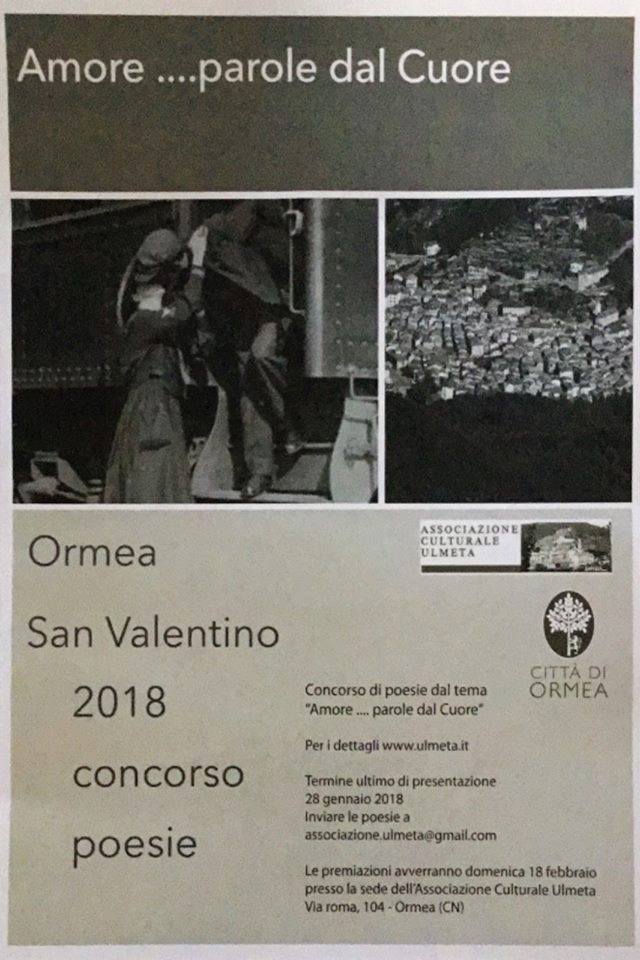 L’Associazione Culturale Ulmeta con il patrocinio del Comune di Ormea promuove il 1° Concorso di Poesia a tema imposto: “Amore.parole dal Cuore ”