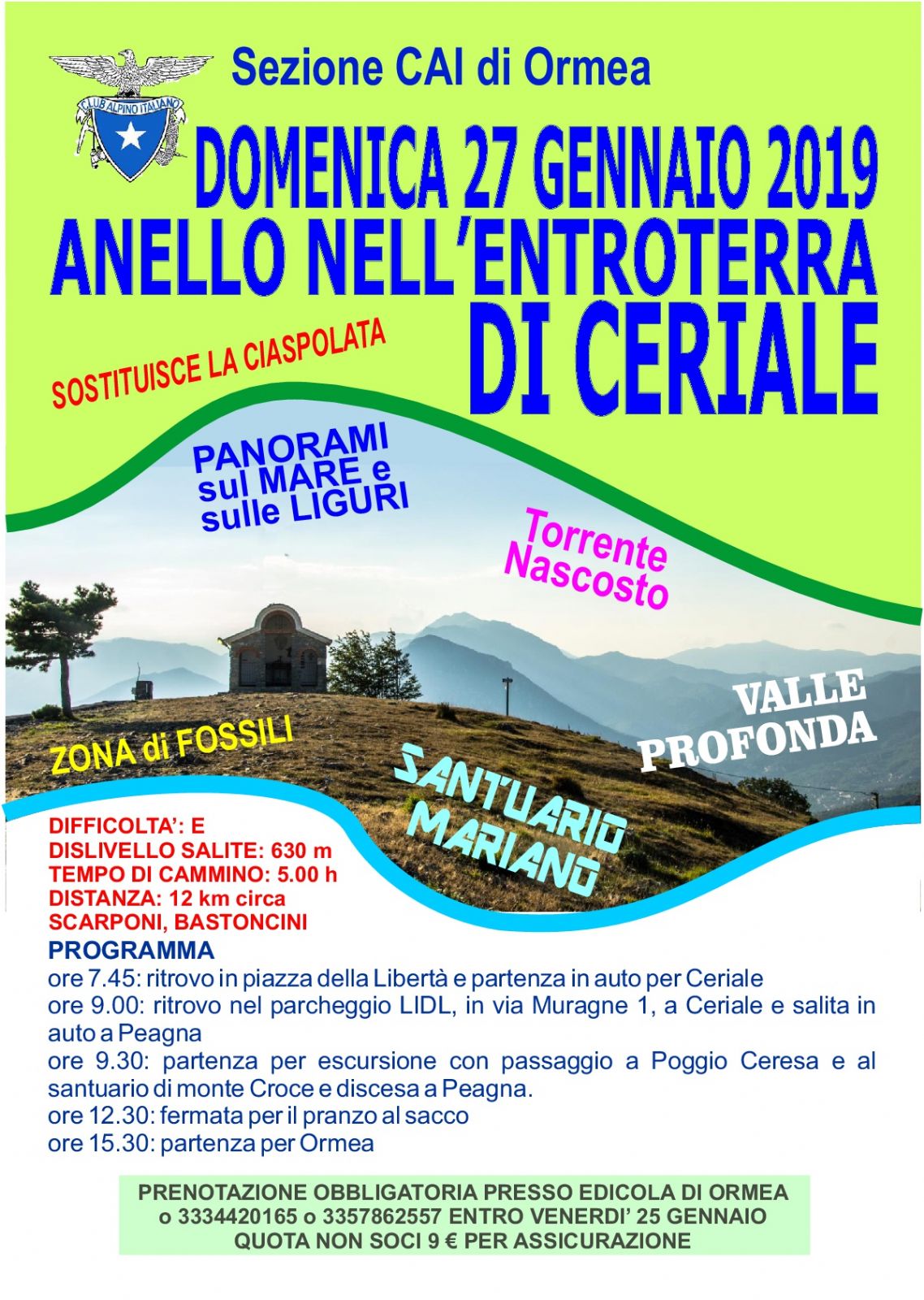 ore 9.00: ritrovo nel parcheggio LIDL, in via Muragne 1, a Ceriale e salita in