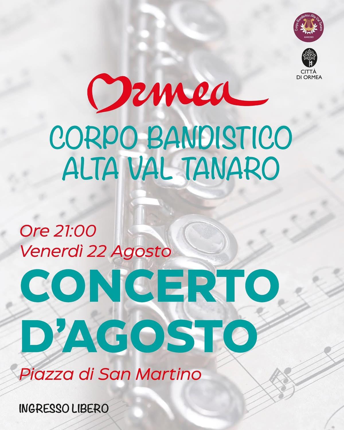 Venerdì 22 agosto alle ore 21:00, la suggestiva cornice di Piazza San Martino a Ormea ospiterà il tradizionale Concerto d’Agosto del Corpo Bandistico Alta Val Tanaro.