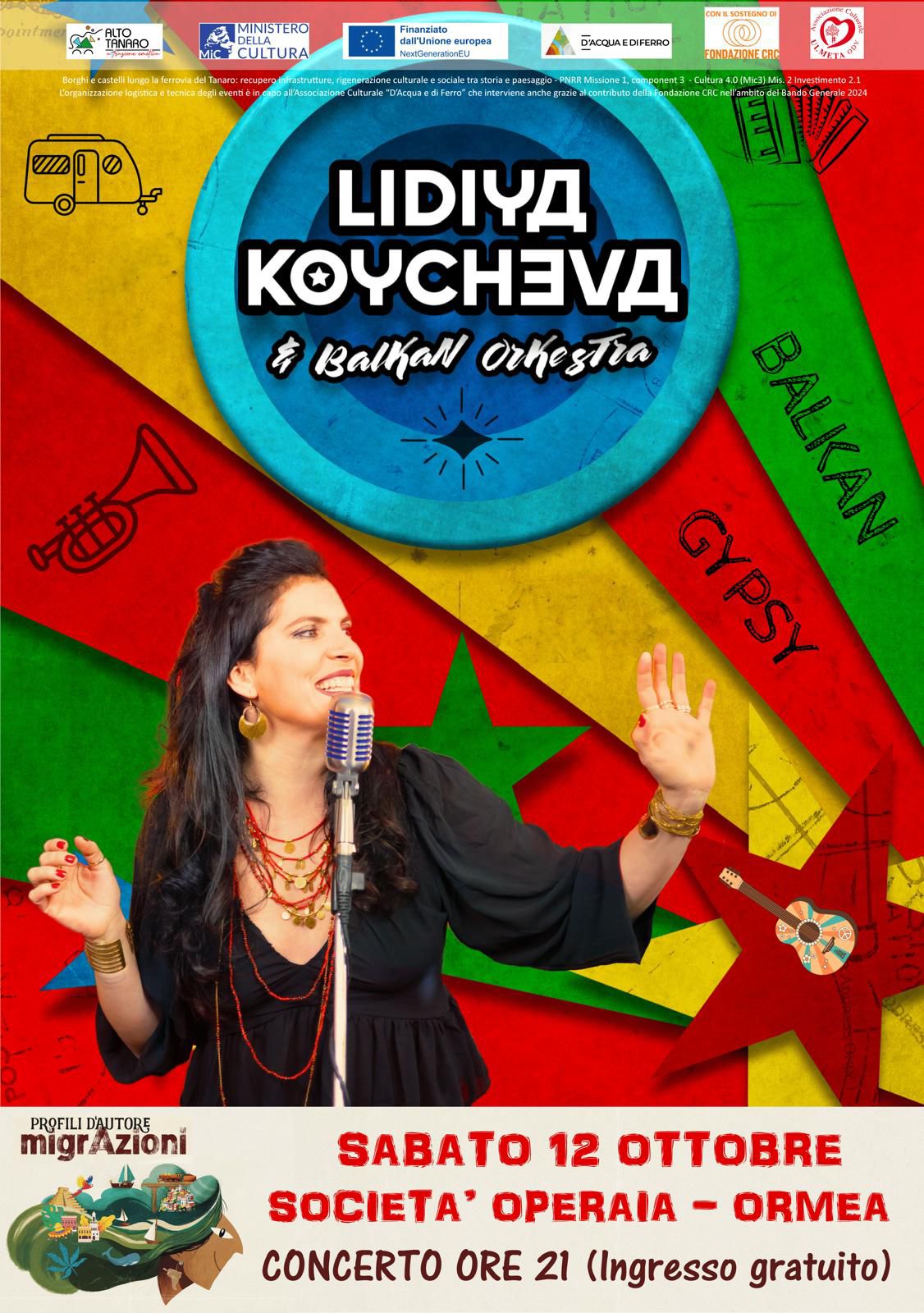Nella Sala Società Operaia si esibiranno Lidiya Koycheva e la sua Balkan Orkestra alle ore 21 di sabato 12 ottobre 2024