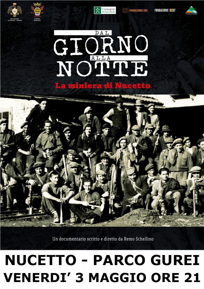 Venerdì 3 Maggio 2019 alle ore 21 a Nucetto nella sala polivalente del parco Gurei sarà presentata e proiettata in anteprima l’opera "Giorno e notte. La miniera di Nucetto" del regista Remo Schellino.