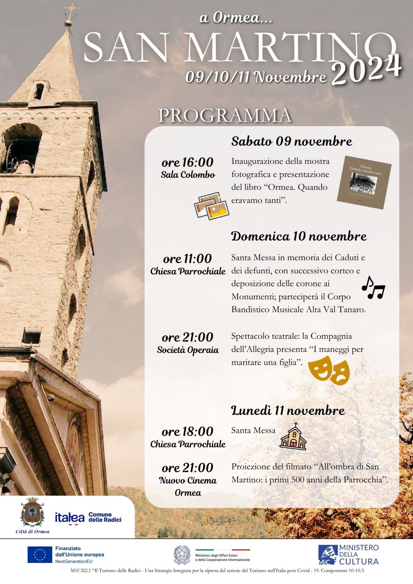 ore 11.00 nella Chiesa Parrocchiale S.S. Messa in onore dei Caduti e dei defunti, con successivo corteo e deposizione delle corone ai Monumenti - parteciperà il Corpo bandistico Alta Val Tanaro