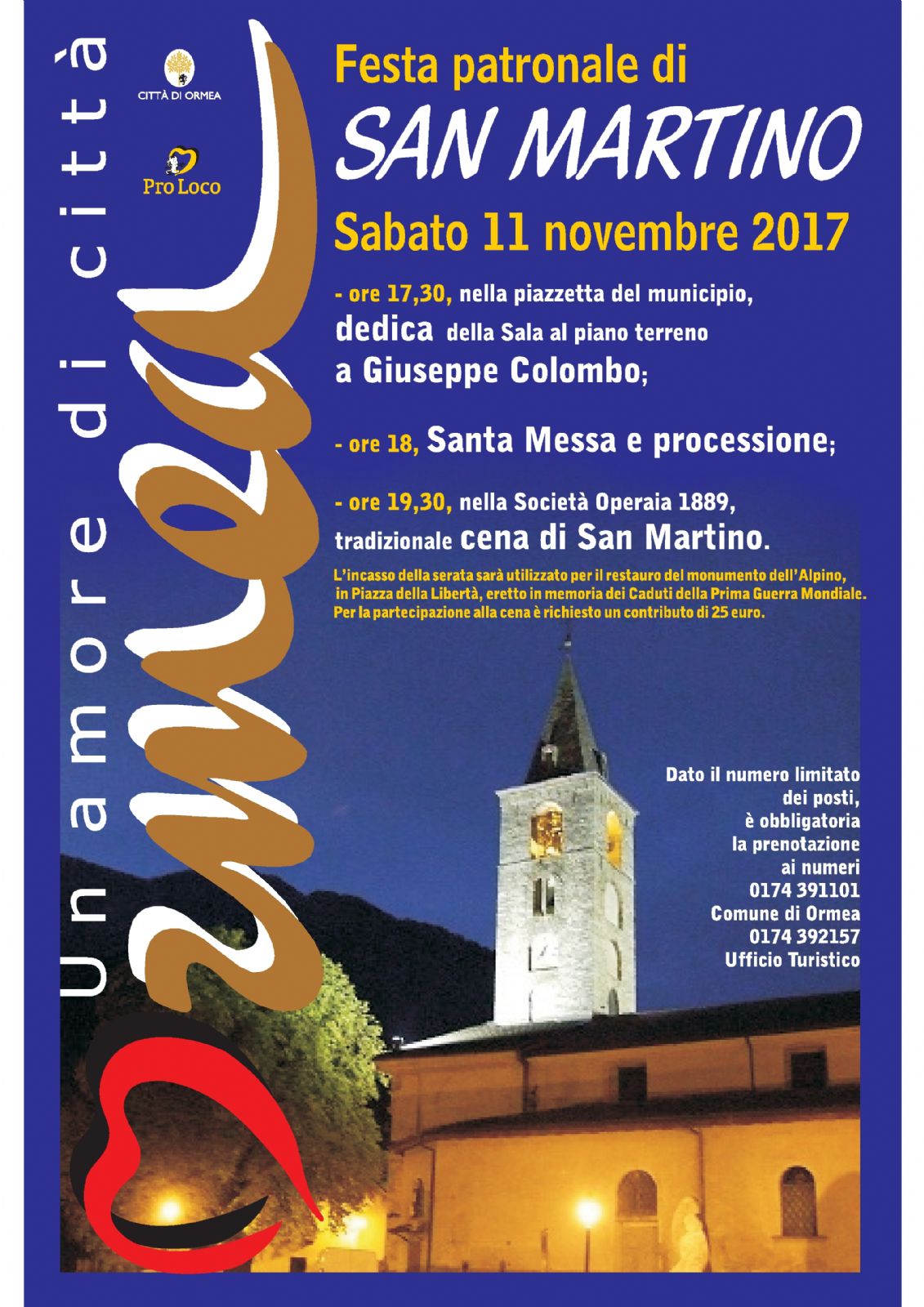- ore 17,30, nella piazzetta del municipio, dedica della sala al piano terreno a Giuseppe Colombo