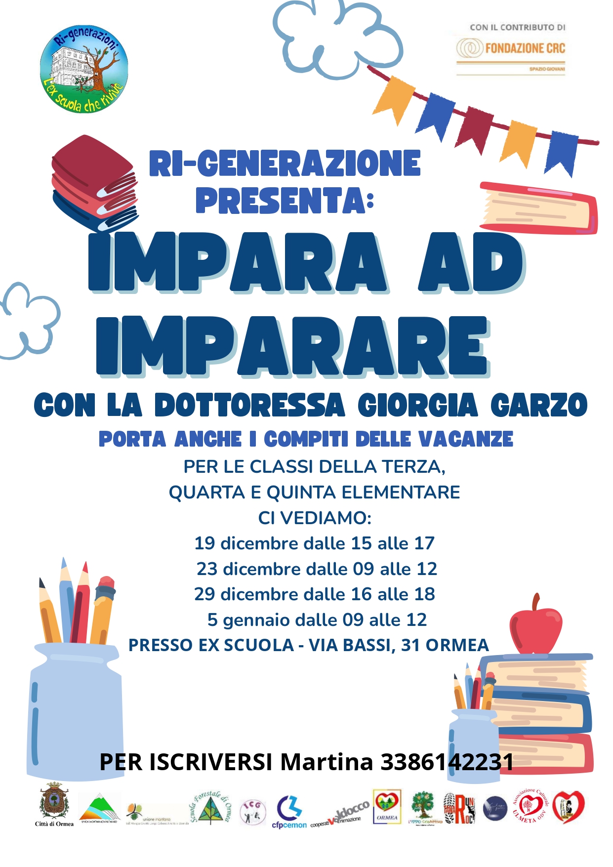 Il percorso, condotto dalla Dott.ssa Giorgia Garzo, è pensato per aiutare i bambini a sviluppare un metodo di studio efficace, potenziare l’autonomia e sperimentare strategie utili per affrontare i compiti scolastici… anche quelli delle vacanze.