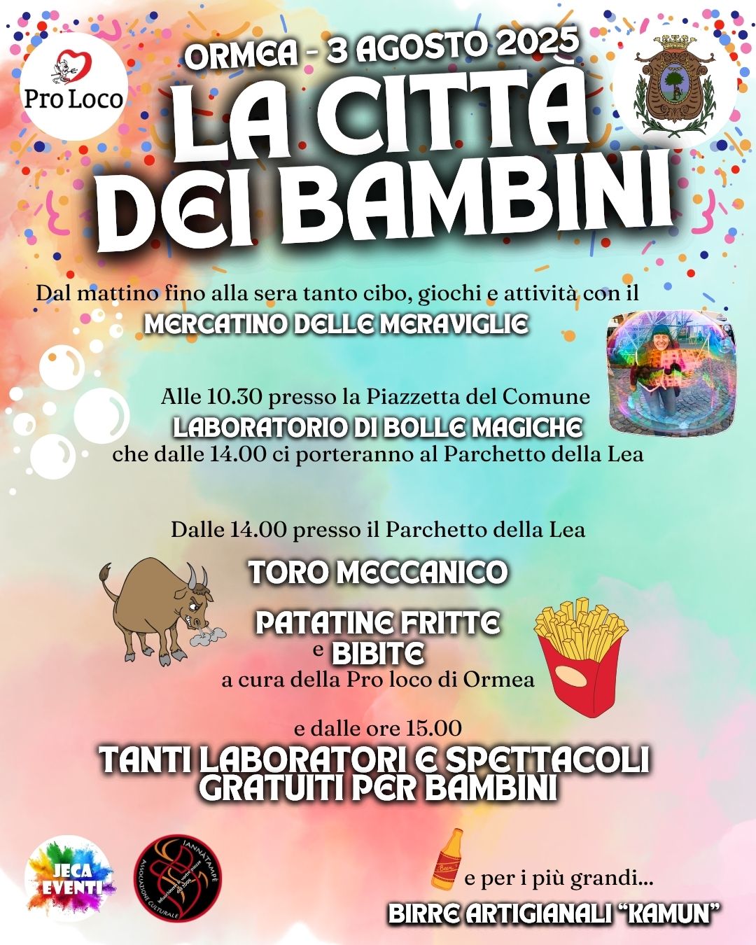 Domenica 3 agosto c'è LA CITTÀ DEI BAMBINI a Ormea! 🎉