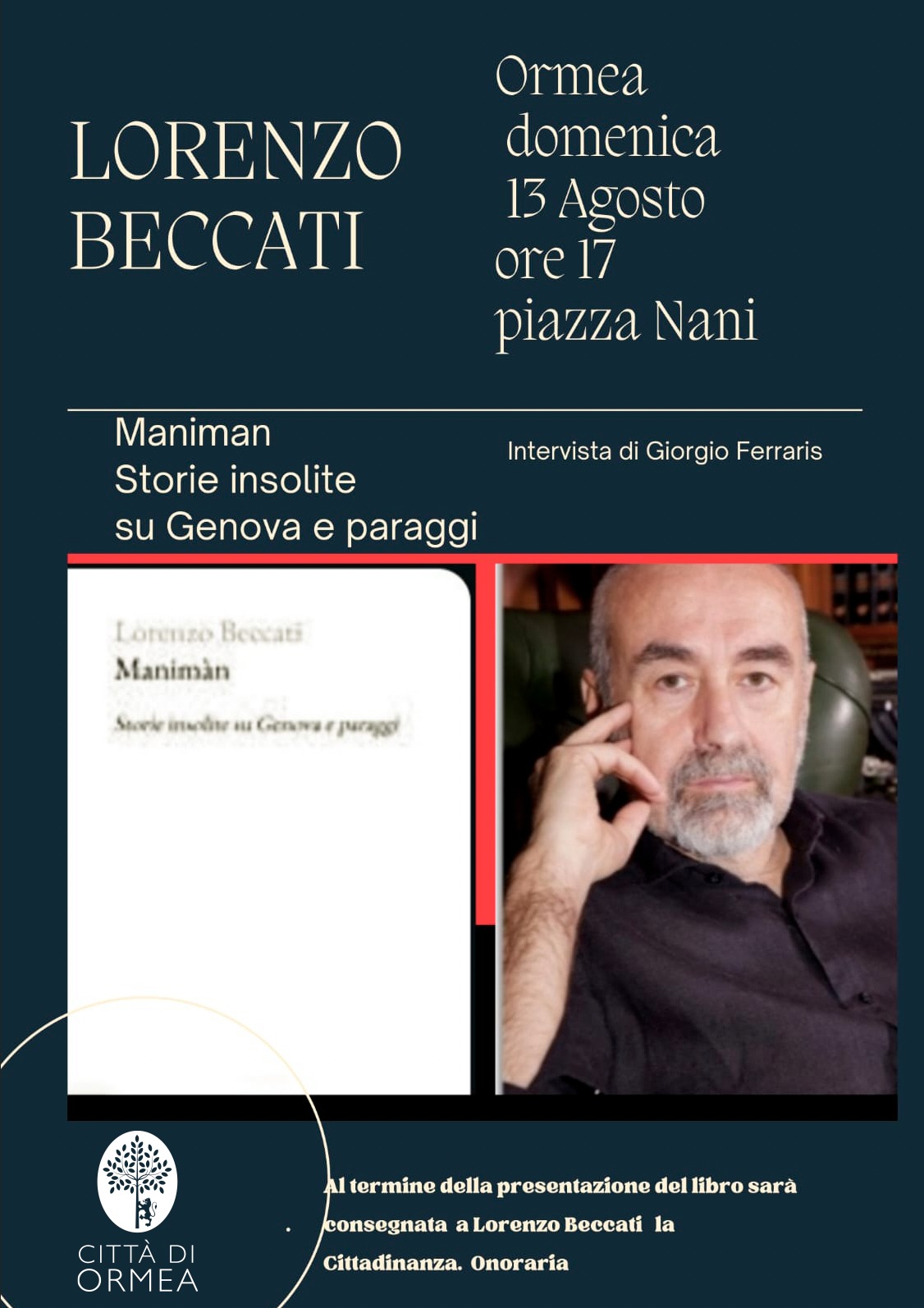Al termine, il Comune di Ormea, consegnerà la Cittadinanza Onoraria a Lorenzo Beccati.