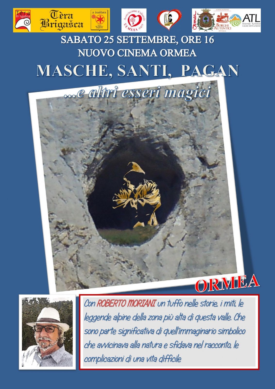 Roberto Moriani parlerà di storie, miti e leggende alpine della zona più alta di questa valle che sono parte significativa di quell'immaginario simbolico che avvicinava alla natura e sfidava nel racconto, le complicazioni di una vita difficile.