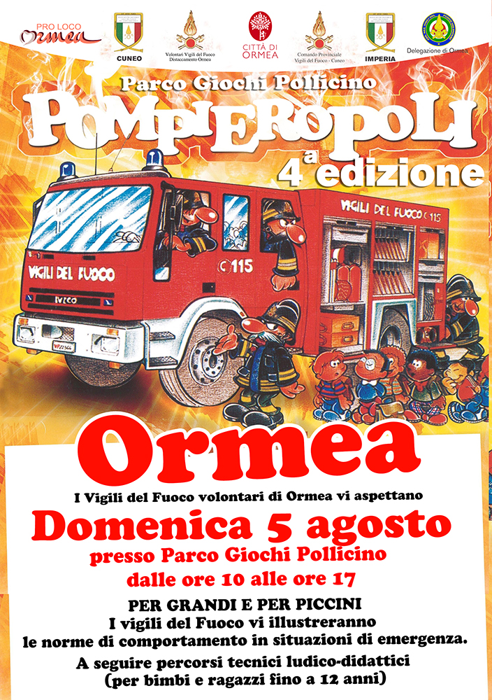 Nel mese dedicato ai bambini e alle famiglie I Vigili del Fuoco di Ormea vi aspettano per seguire norme di comportamento in situazioni di emergenza per grandi e piccini presso il Parco Giochi Pollicino con percorsi tecnici ludico-didattici.