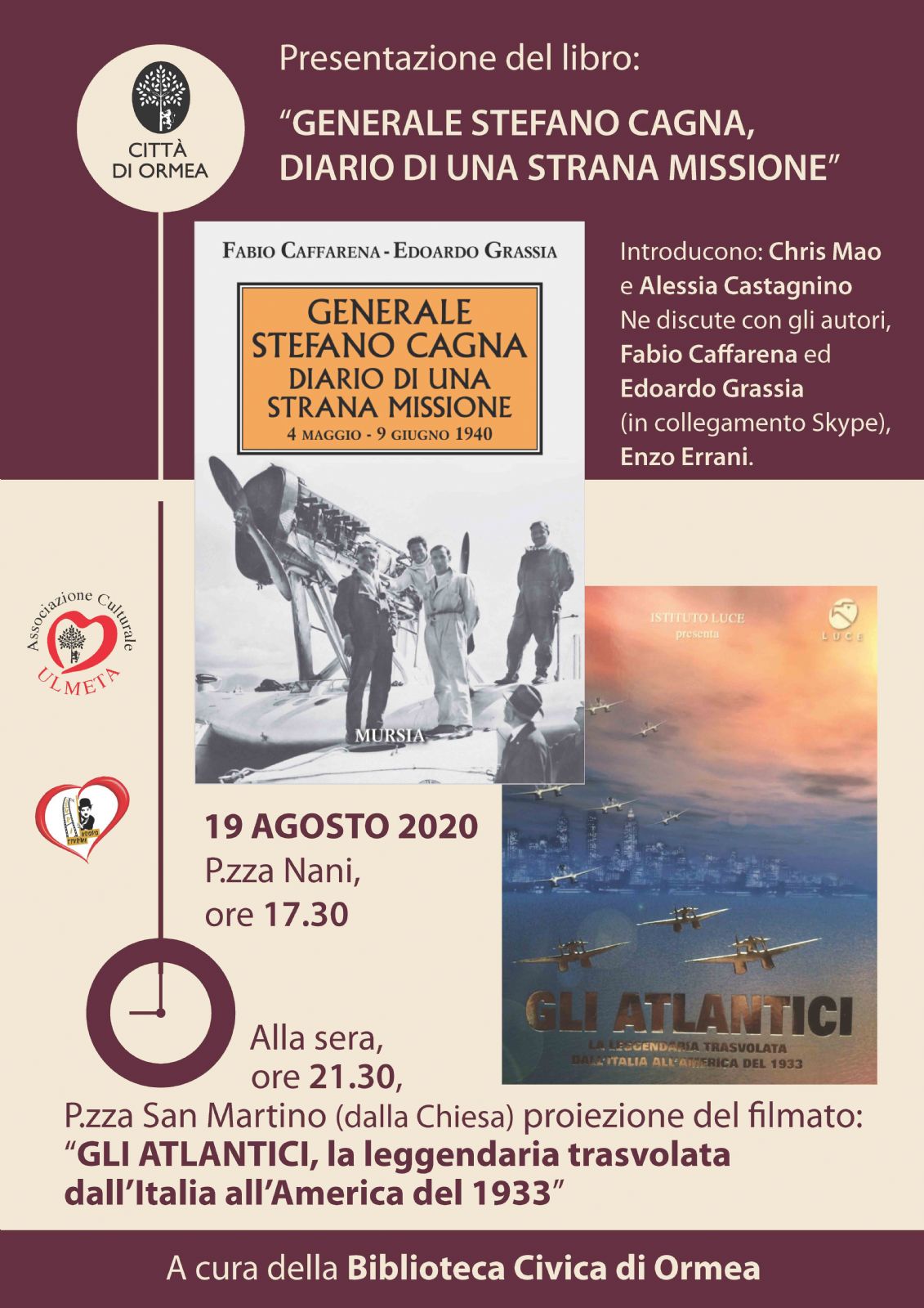 Presentazione del Libro: "Generale Stefano Cagna, diario di una strana missione e Proiezione de "Gli Atlantici. La leggendaria trasvolata dall'Italia all'America del 1933"