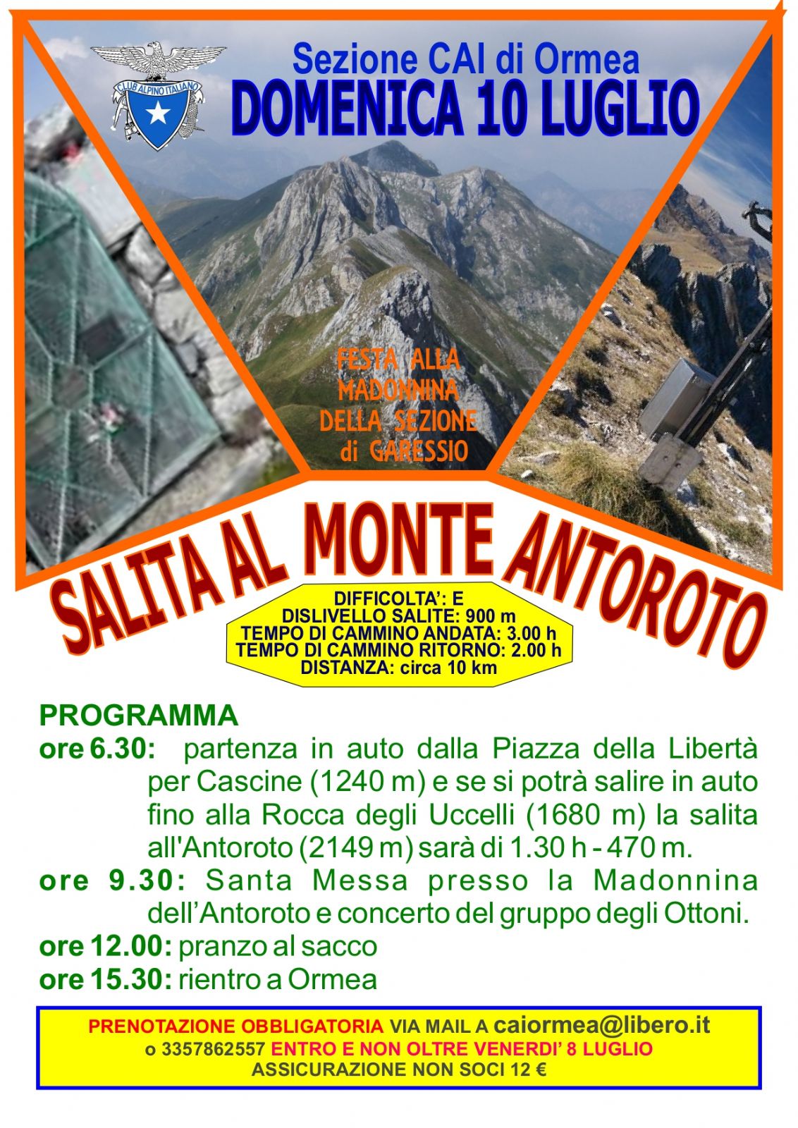 PRENOTAZIONE OBBLIGATORIA VIA MAIL A caiormea@libero.it
