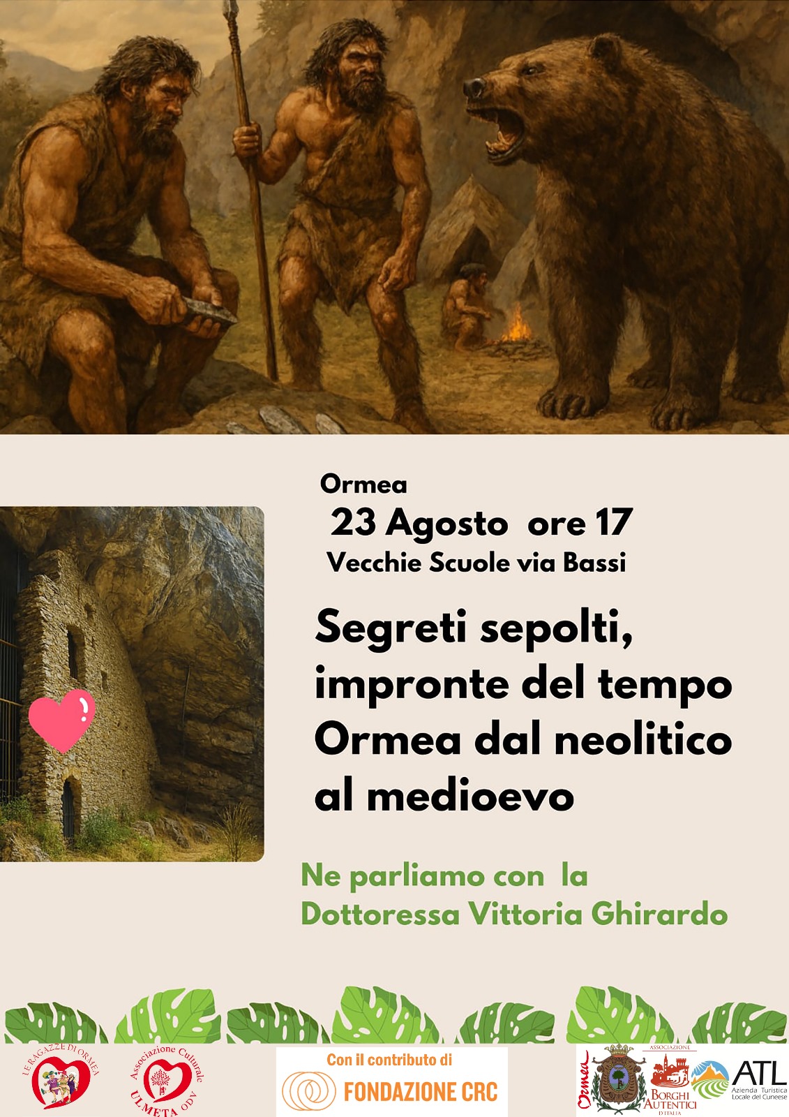 Sabato 23 agosto alle ore 17, presso le Vecchie Scuole di via Bassi a Ormea, incontro Segreti sepolti, impronte del tempo – Ormea dal neolitico al medioevo con la Dottoressa Vittoria Ghirardo, per un viaggio affascinante tra storia e archeologia del territorio.