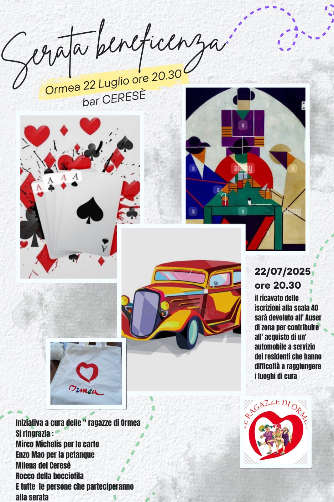 Martedì 22 luglio al Bar Ceresé Scala 40 in beneficenza - ore 20.30
